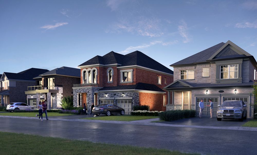 A huge development with four separate developers involved, Midhurst Valley will be an entire community when complete, with parks, playgrounds and other community areas – making it an ideal place to live, work and play. The homes built by Sundance Homes will come in a range of shapes, sizes and styles, and are separated into three categories: 25′ semis, 36′ singles, and 44′ singles. The 25’s semis have layouts with either three or four bedrooms and range in size from 1,649 to 2,110 square feet. The detached homes on 36′ lots range in above-grade floor space from 2,220 to 2,880 sq. ft. and have between three and five bedrooms. The largest homes will be the detached singles on 44′ lots, which will have four or five bedrooms and, according to floorplans, will range in size from 2,654 to 3,668 sq. ft. in above-grade floor space.